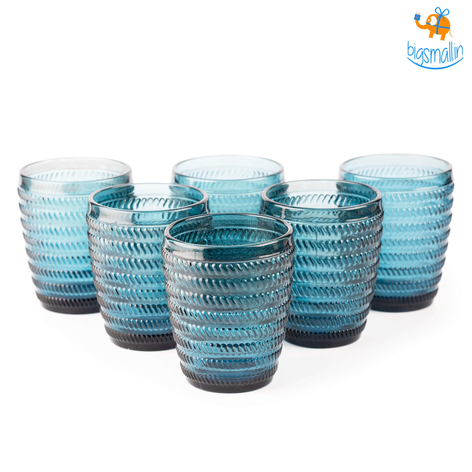 Crystal Blue Textured Glasses - Set of 6