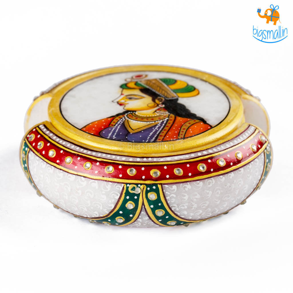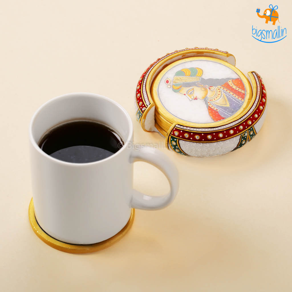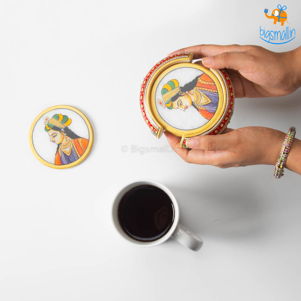 Presenting Hand-Painted Marble Queen Coasters, made of high-quality marble they are a great addition to your collection. The coasters are hand-painted by master artisans and will be an amazing touch of traditional art to your decor. The set works as a great gift for festive occasions or as a housewarming gift for loved ones.