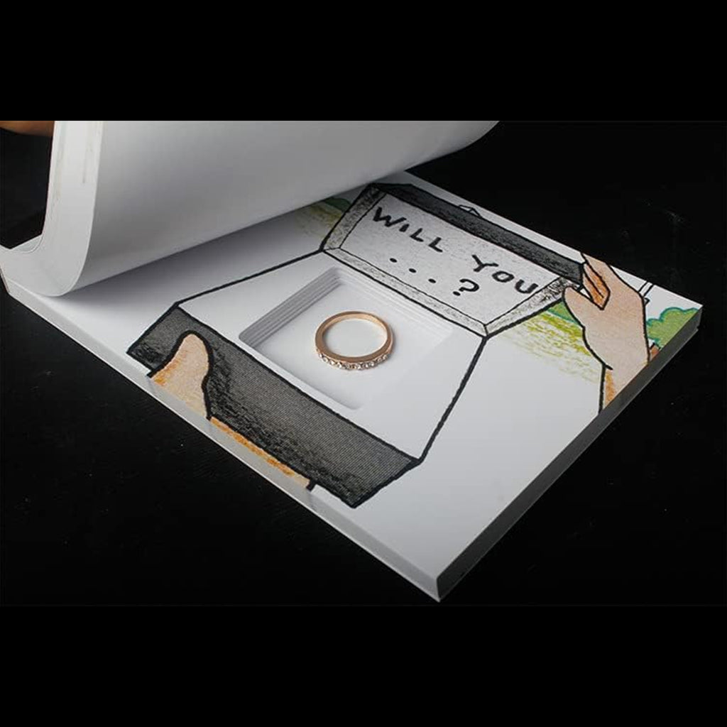 Perfect for romantics and storytellers, the Hidden Ring Propose Comic Book transforms emotions into an unforgettable memory. Featuring a discreet compartment to hold a ring, this book elevates proposals with its heartfelt charm. As the recipient flips to the designated page, they’ll discover a beautiful illustration of a hand presenting a ring box, accompanied by the elegant question, whether it’s a heartfelt "Miss You" or a life-changing "Will You…?", each page reveals a touching story that builds up to a meaningful surprise. This thoughtful design ensures your proposal is both unexpected and deeply sentimental.