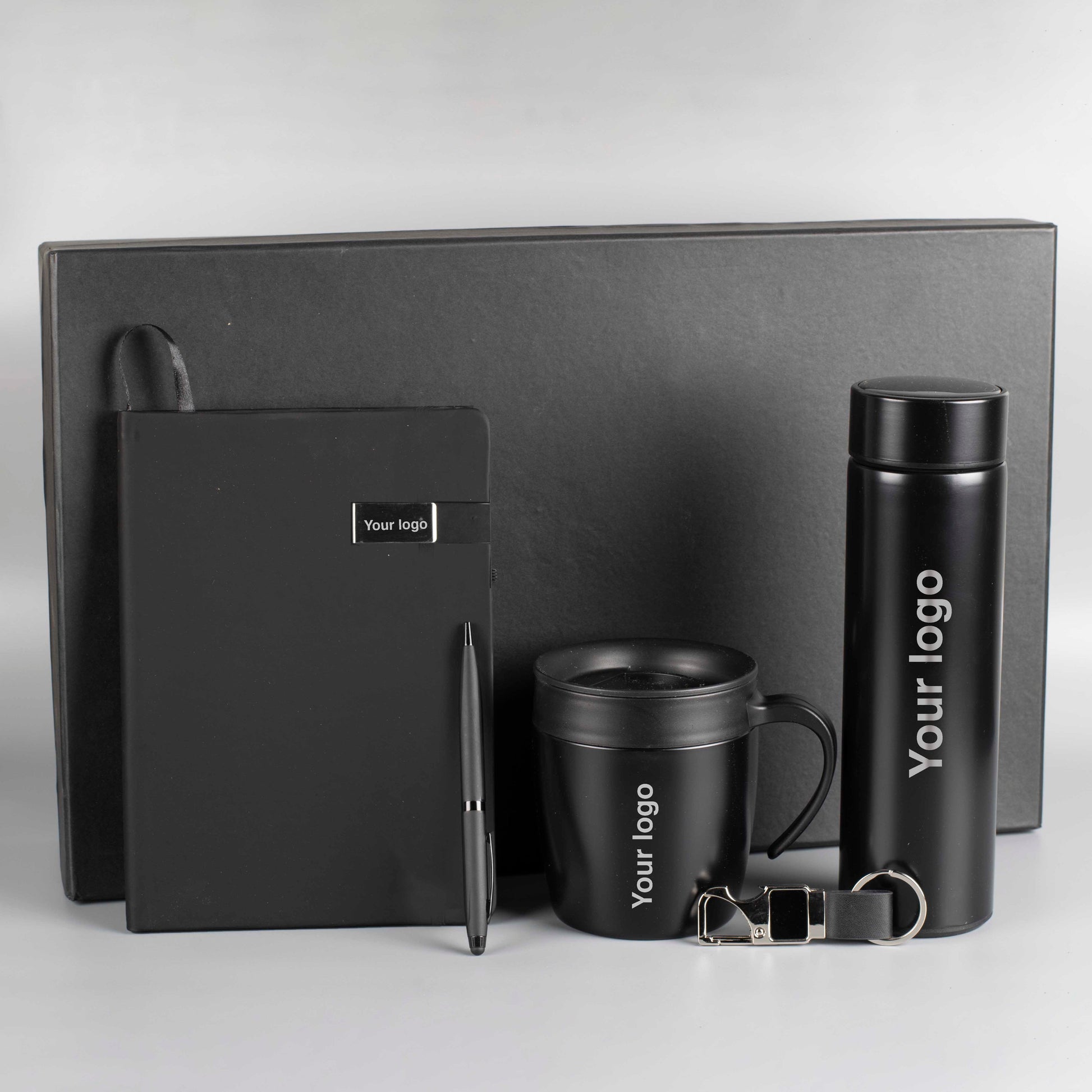 • Includes a diary, a pen, a keychain, a coffee mug and a temperature flask bottle