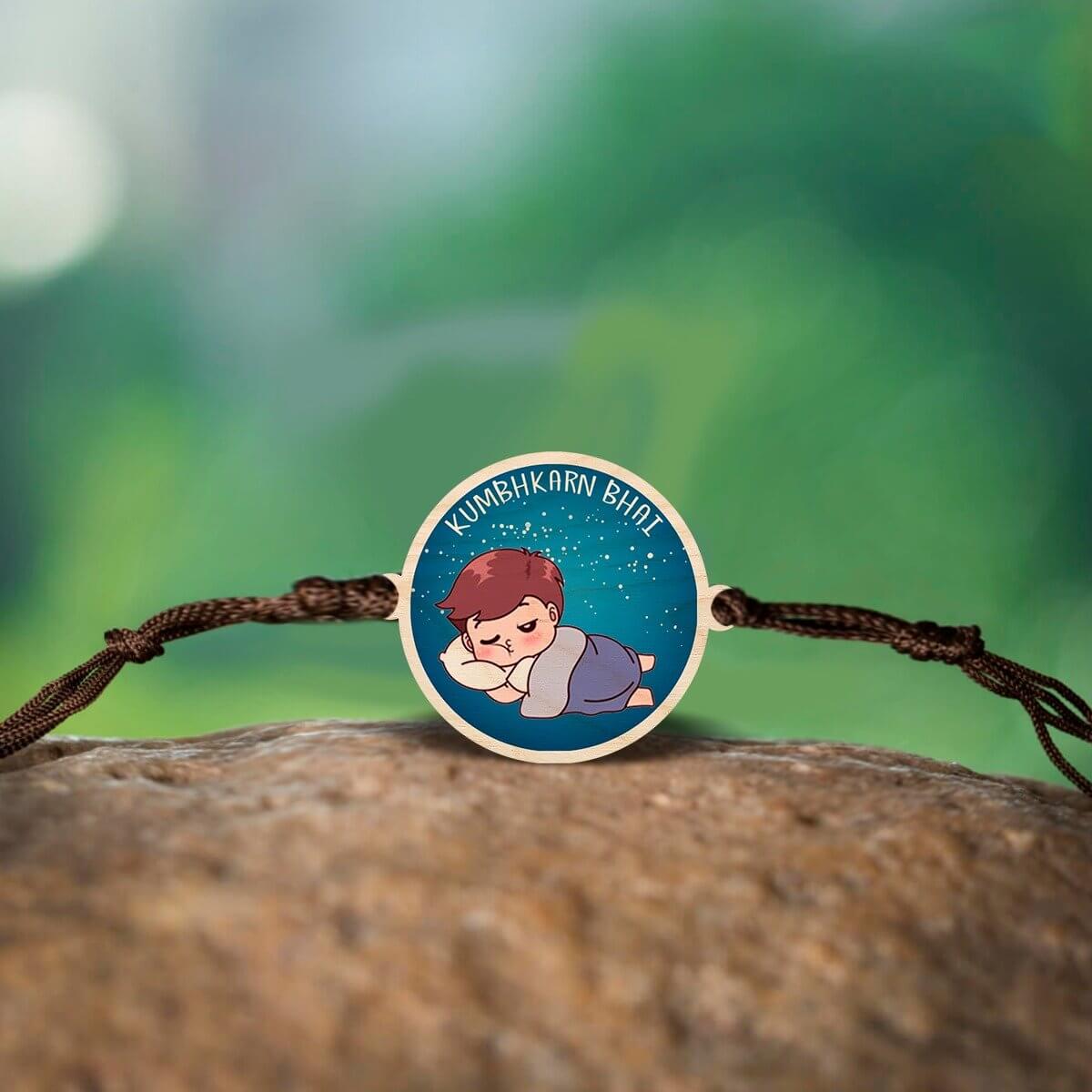 Surprise your sleepyhead brother this Rakhi season? Tie him this Kumbhkaran Bhai Wooden Rakhi and let him know that even if it's not the real deal, your sentiments are. The best part about the Rakhi is the packaging - it's handmade. So you can send the Rakhi to your brother living in a different city without worry. It'll be just like you are there celebrating with him.