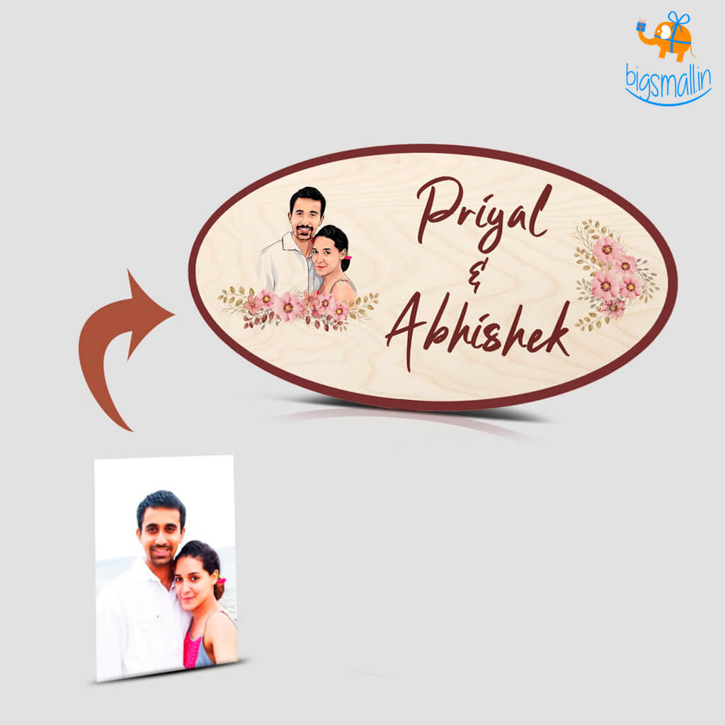 Welcome your guests to your home in a cool way. Introducing Personalized Caricature Oval Name Plate, a unique new take on the traditional nameplates. With the beautiful calligraphy and a lovely picture, it is sure to gain an appreciation of all your guests. It is a freestyle vector art where you send us your best photo and we transform it into a cartoon avatar. We do not change the pose and draw it exactly like the photo by using cartoonish features. The nameplate is pretty easy to hang up on the main gate or outer wall. It will make for a great housewarming gift for your friends who just bought their dream home.
