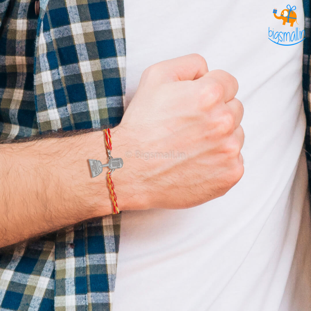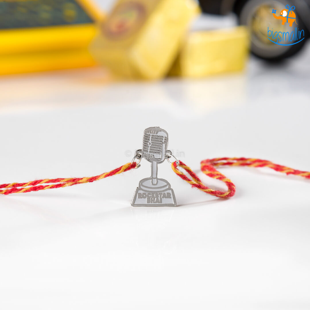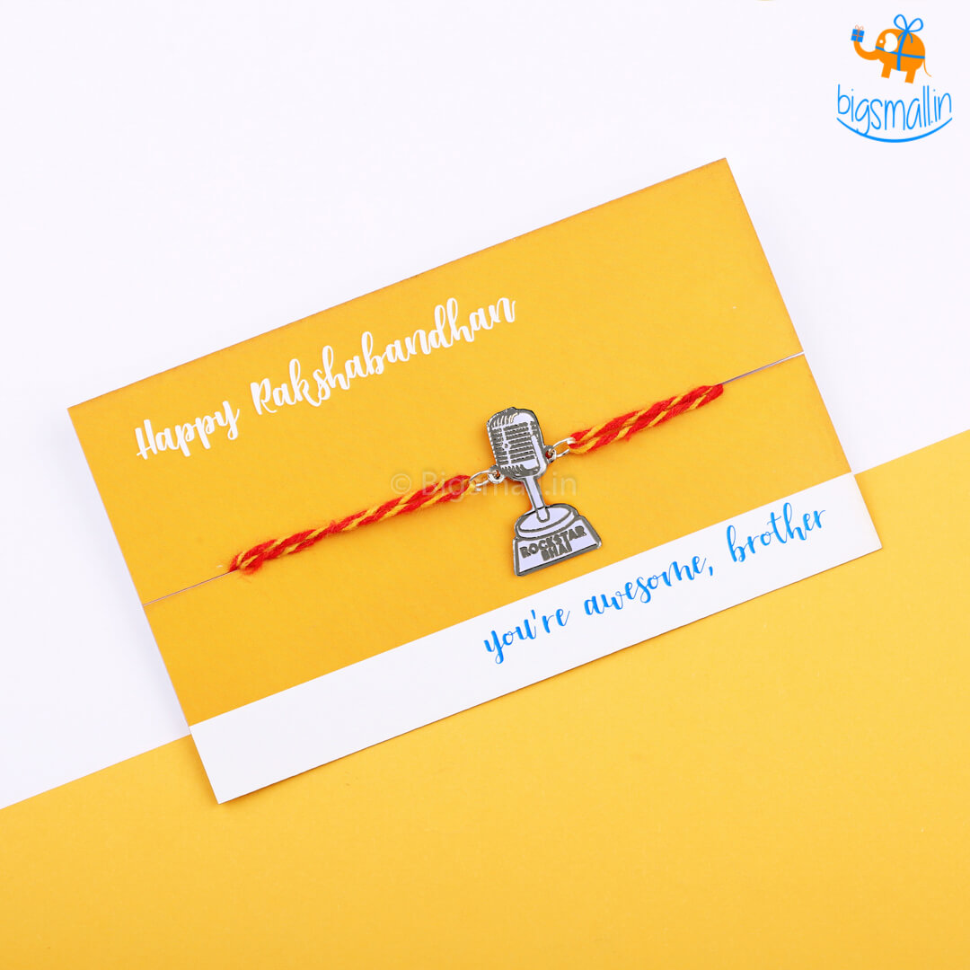 Grew up listening to your brother's angelic vocals? Always supported him in whatever competitions he participated in? If so, then this rakhi is perfect for him. Celebrate your undeniable strong bond and your unwavering support this Rakhi season with this personality-specific Rakhi. Rockstar Bhai Rakhi comes with a metal sheet embellishment in the shape of a microphone.