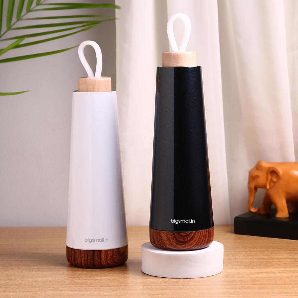 Introducing the TerraLoop Bottle – a perfect harmony of natural textures and modern design. With a sleek silhouette, wood-textured base, and bamboo lid, this bottle is crafted for those who appreciate beauty in the details. Available in classic black or pure white, and customizable with your name, it’s more than just a bottle—it’s a reflection of you.