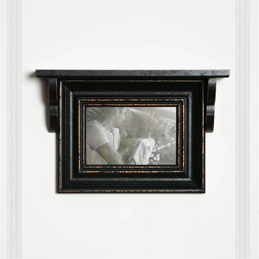 Elevate your home decor with this elegant vintage wall-mounted photo frame with a shelf that blends functionality and charm. Crafted with a distressed black finish for a timeless, rustic appeal, this piece serves as both a picture frame and a decorative wall shelf.