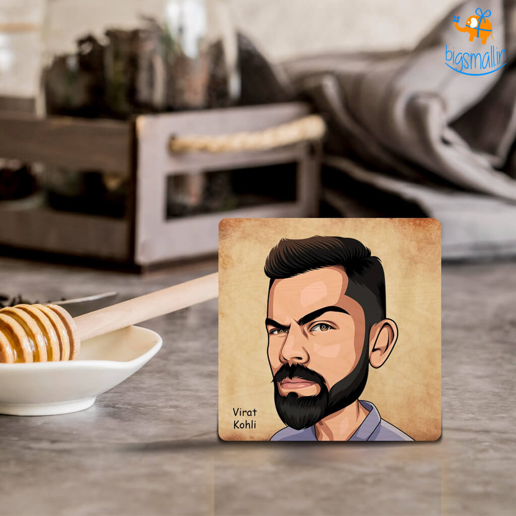 Presenting these beautiful Virat Kohli wooden coasters for all the Cricket fans. Don't just stop at putting up your favorite team's poster and wearing their numbers, but now extend the love (or obsession) to your kitchen too. These finely crafted wooden coasters with impeccablely printed Kohli's caricature on it can easily hold coffee mugs, wine glasses, etc. The coasters are made with premium plywood. These wooden pieces are perfect for when the friends are over to watch the game.