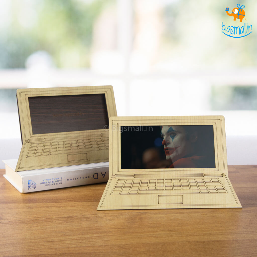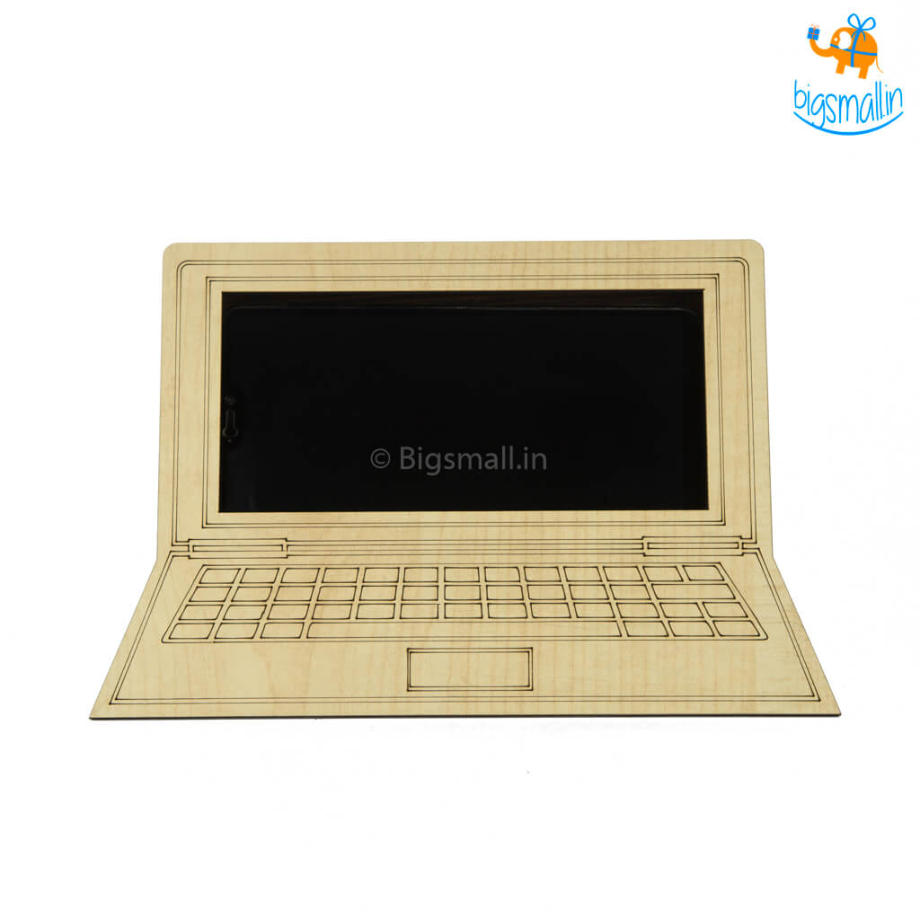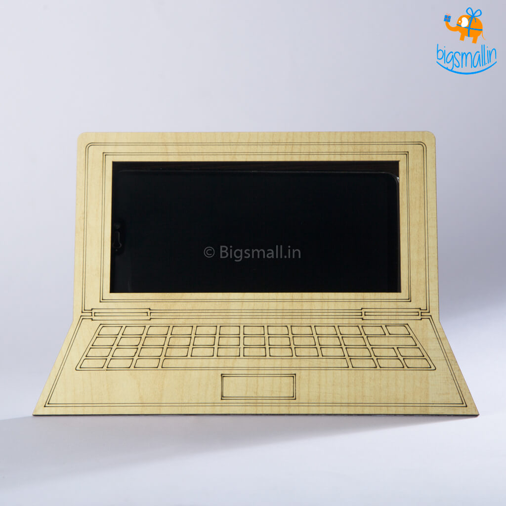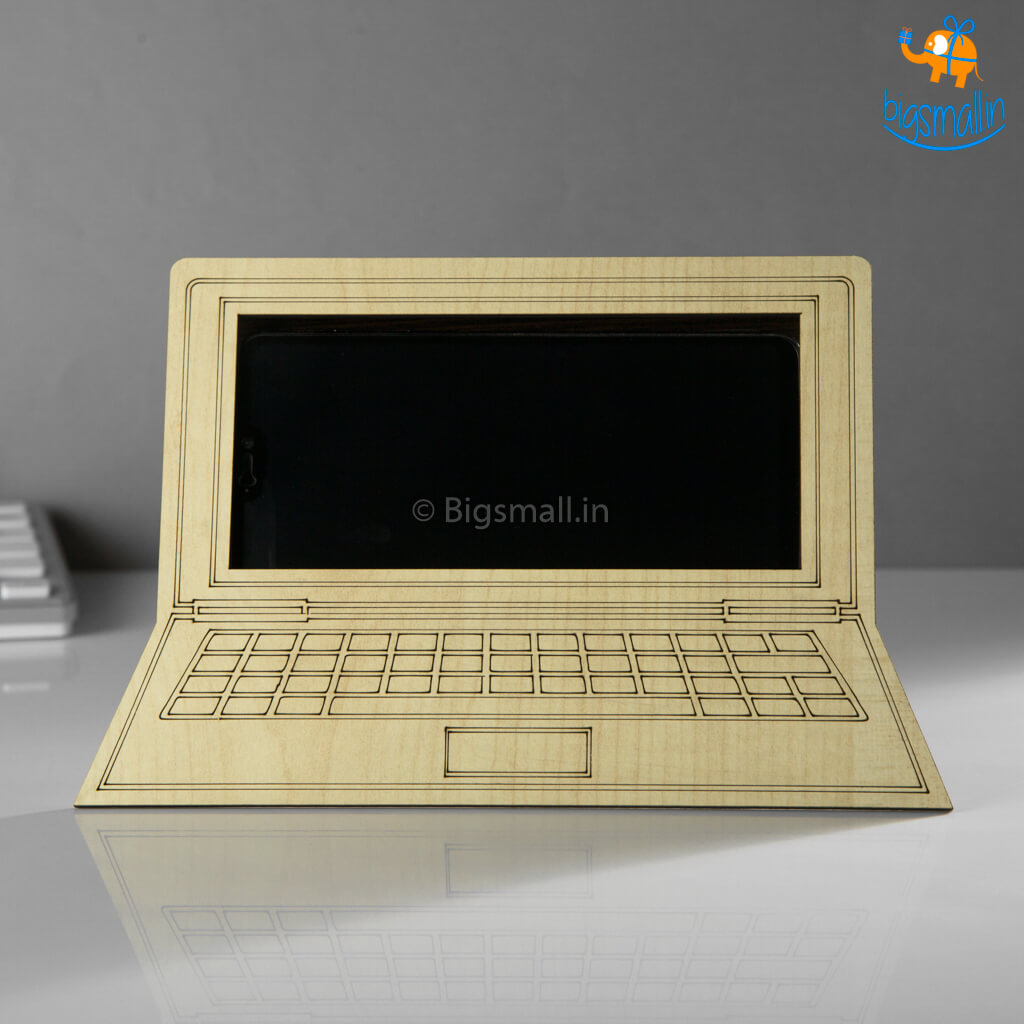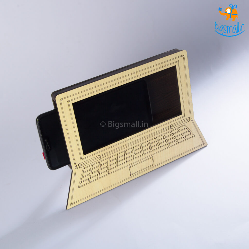 Presenting a stylish and quirky mobile stand that is made out of wood. This phone holder is designed like a laptop and it will look amazing on the office desk or work table. This wooden stand holds the mobile phone horizontally and it can be placed on any flat surface. A unique gift for a student who makes notes while watching lectures on their phone or a couch potato friend who loves binge-watching YouTube videos.